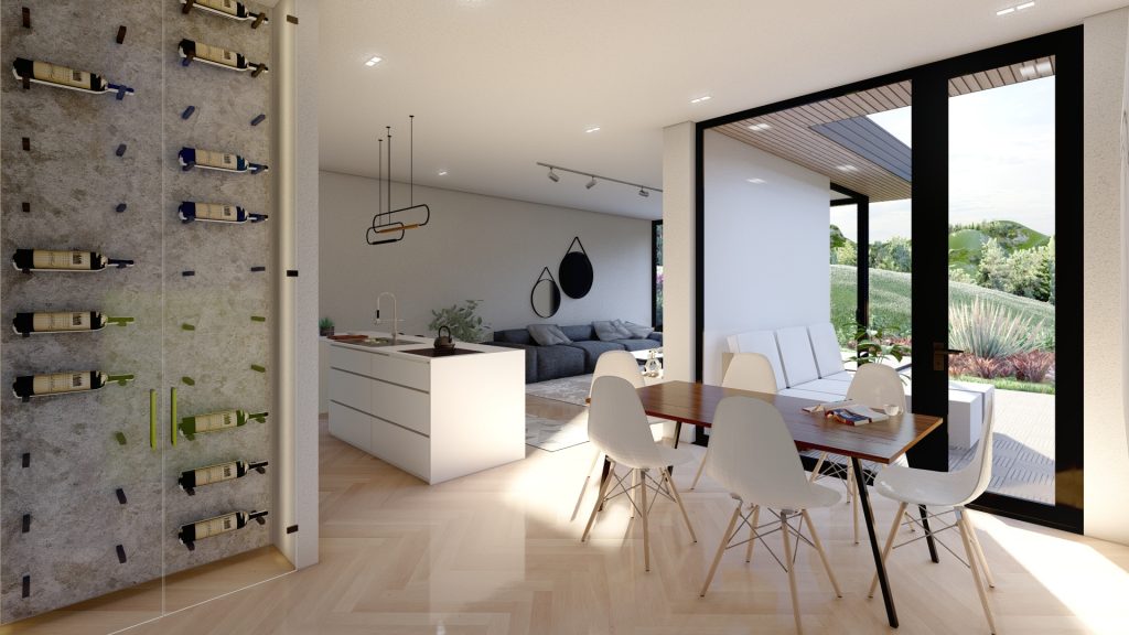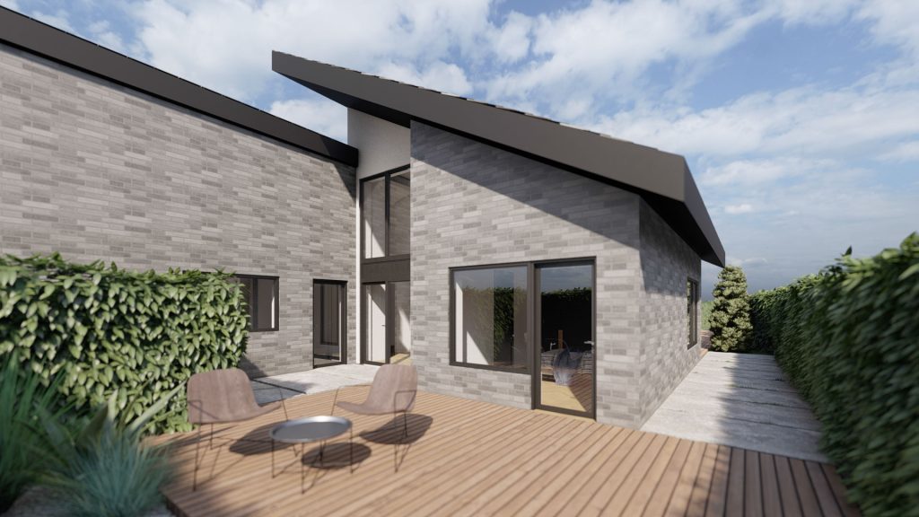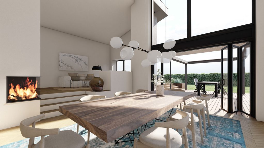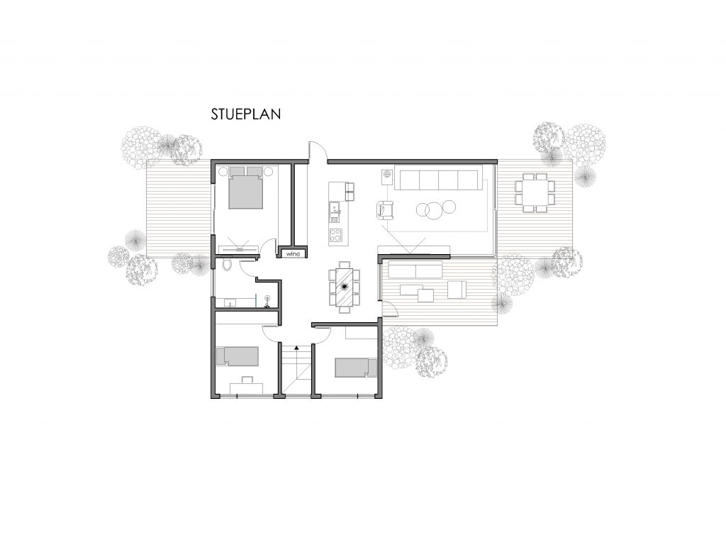“Japansk inspireret, gode materialer, douglas gulve, pivot entredøre, døre i fuld højdeVinreol, alcove, pejs, udendørs bad foran soveværelse, tilføj ovenlysvinduer i badeværelse på 1 sal. Og evt ved køkken på 1 sal. 1 hus men også 2 ejerligheder.Sauna, fitness, spa. Japanske planter foran soveværelse, stemning.