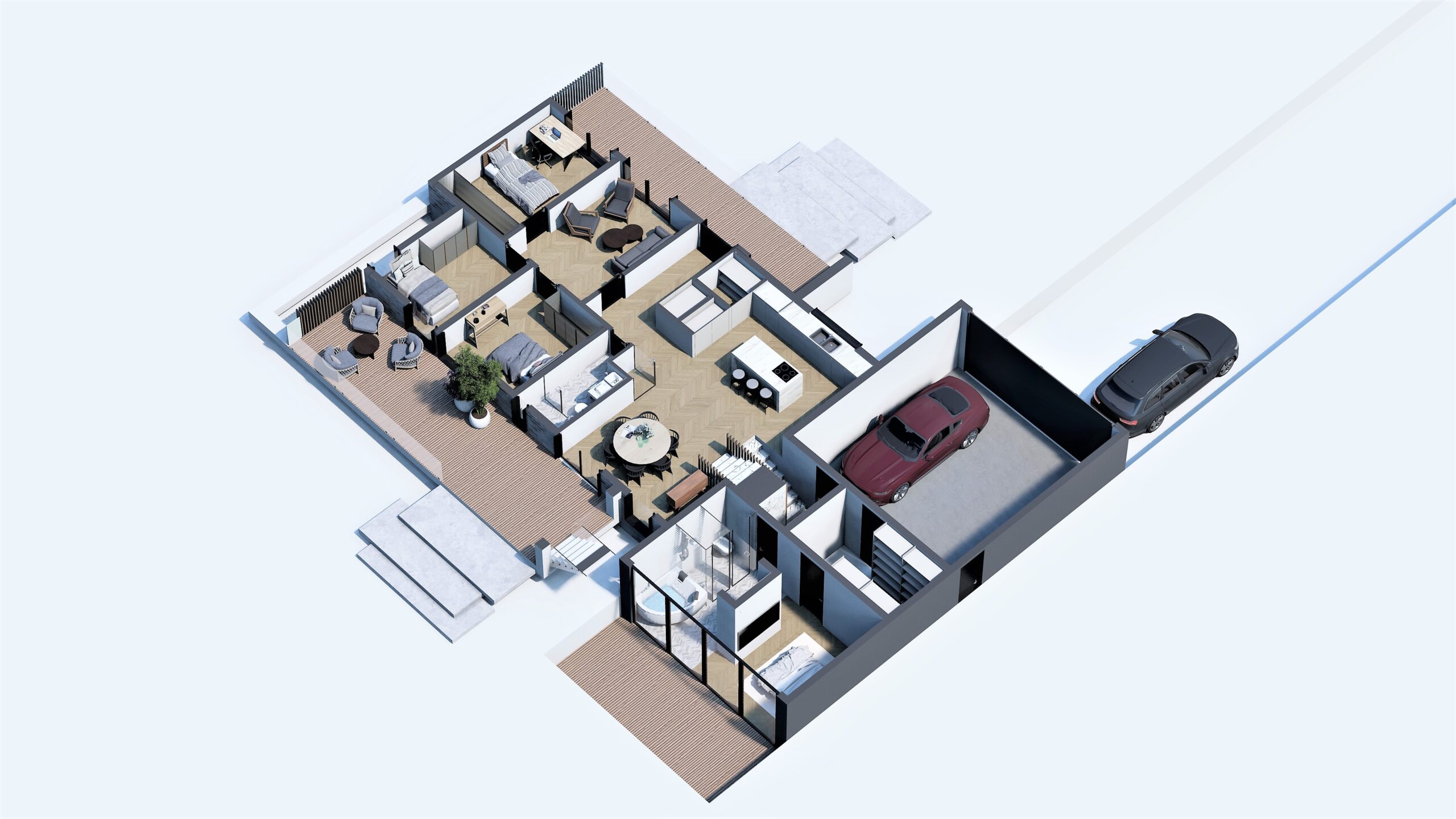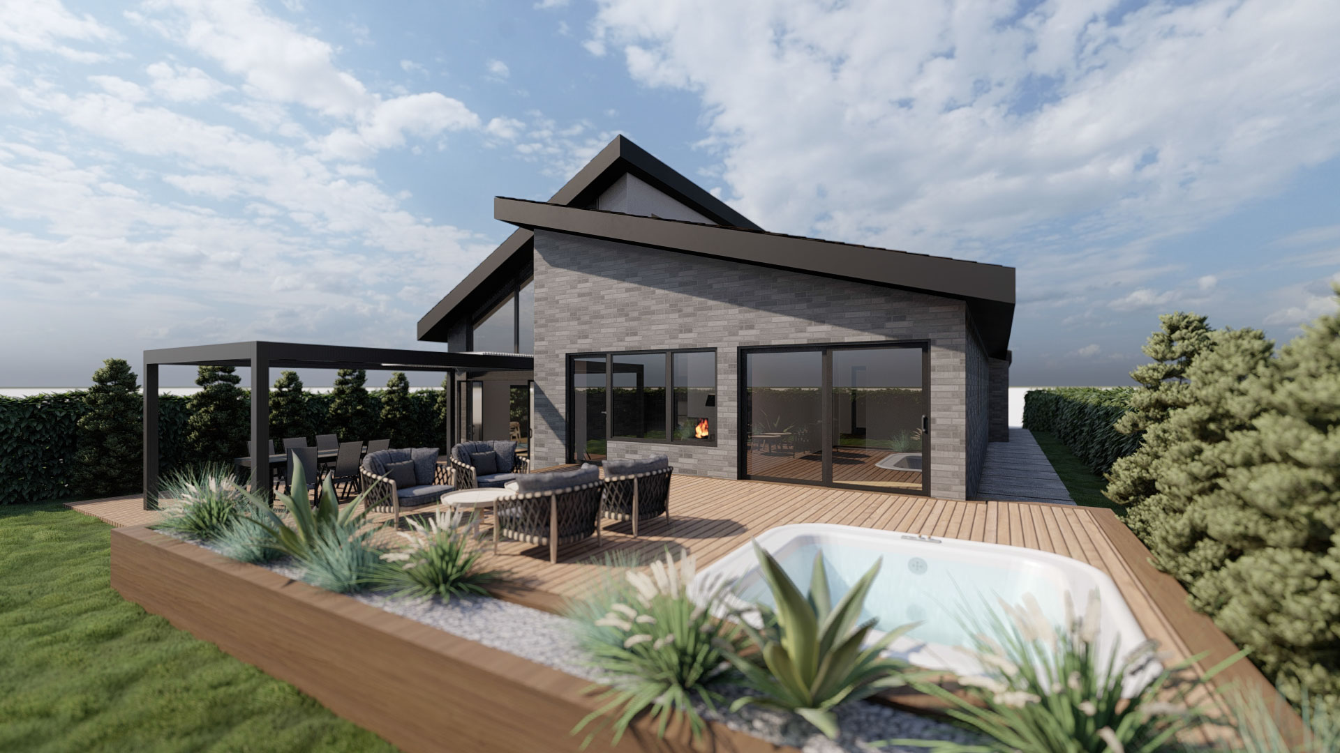 Visualiser din drømmebolig/ombygning Profesionelle 3D generede billeder af huset udefra – næsten som at se det i virkeligheden. Et normalt byggeri vil give mellem 6-12 billeder
